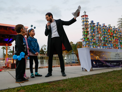 Rabbi Dubov, of Chabad of Oviedo–Winter Springs, at the forefront of a Hanukkah celebration held at Center Lake Park in Oviedo on Monday night, greeted and mingled with those in attendance. Young...